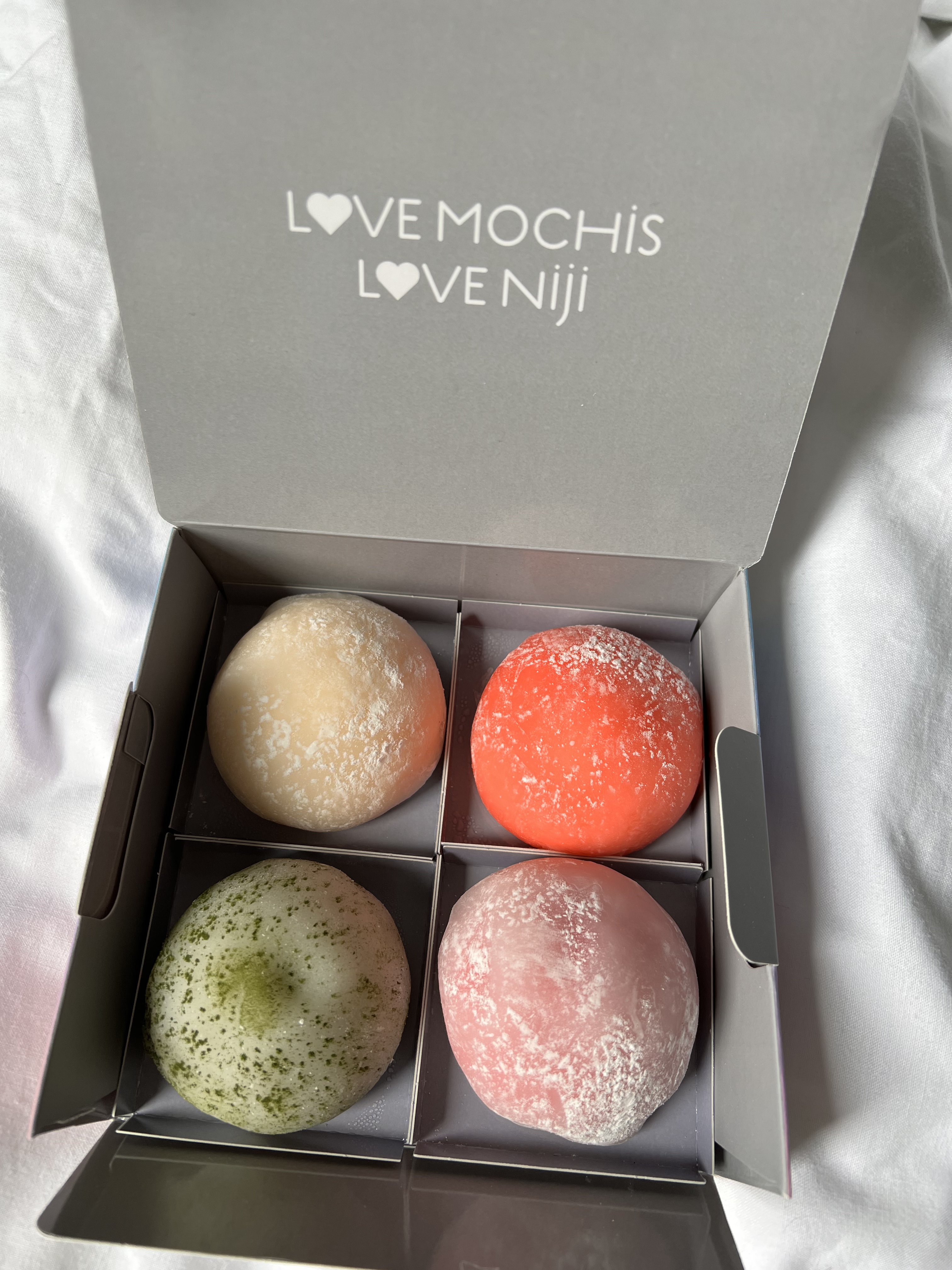 Posté le 24/08/2023 à 16:11"Niji Mochi propose plusieurs saveurs de mochi comme matcha , yuzu , sakura , chocolat blanc , mangue fruit de passion et plus. Le prix paraît un peu excessif(l'unité coûte entre environ 3€ et environ 5,1€). Cependant , cela est expliqué par les goûts originaux et à la qualité du mochi. Si vous voulez essayer des mochis , je vous recommande Niji Mochi"